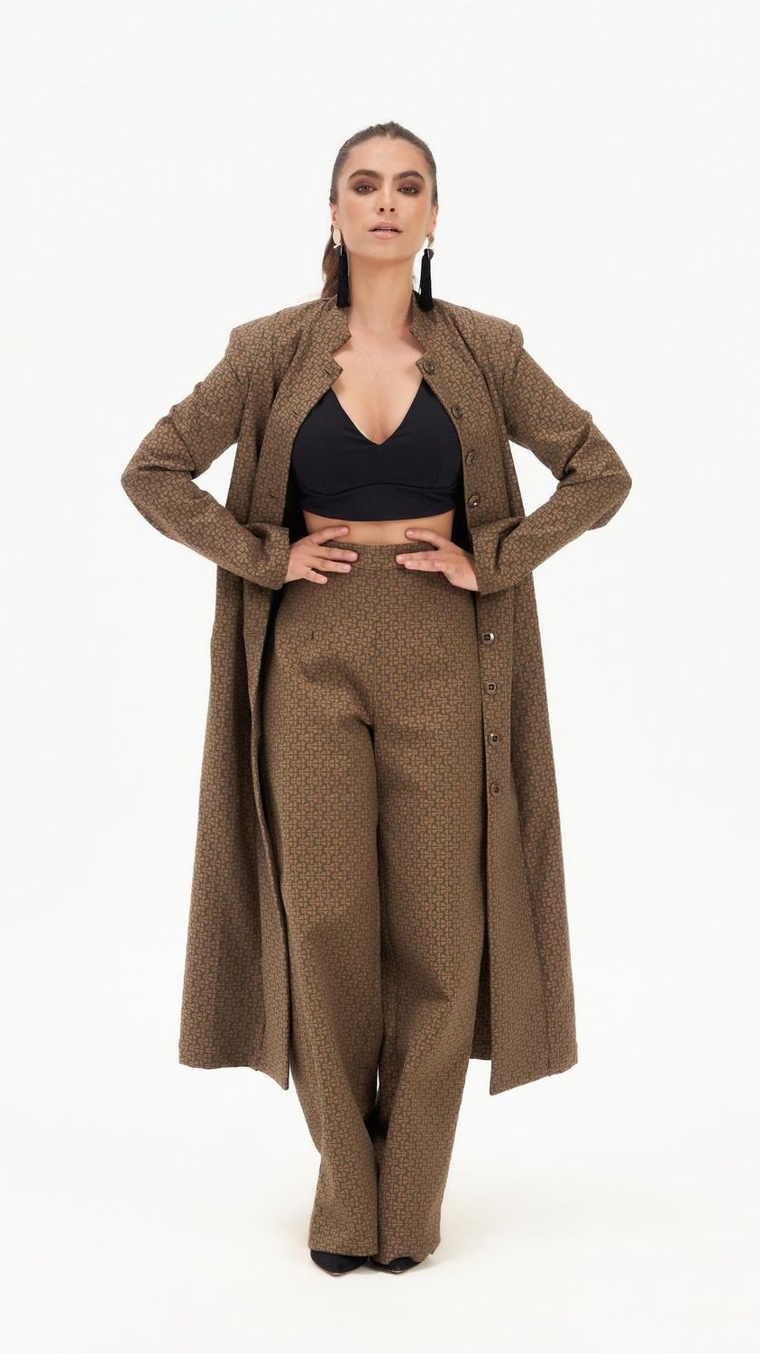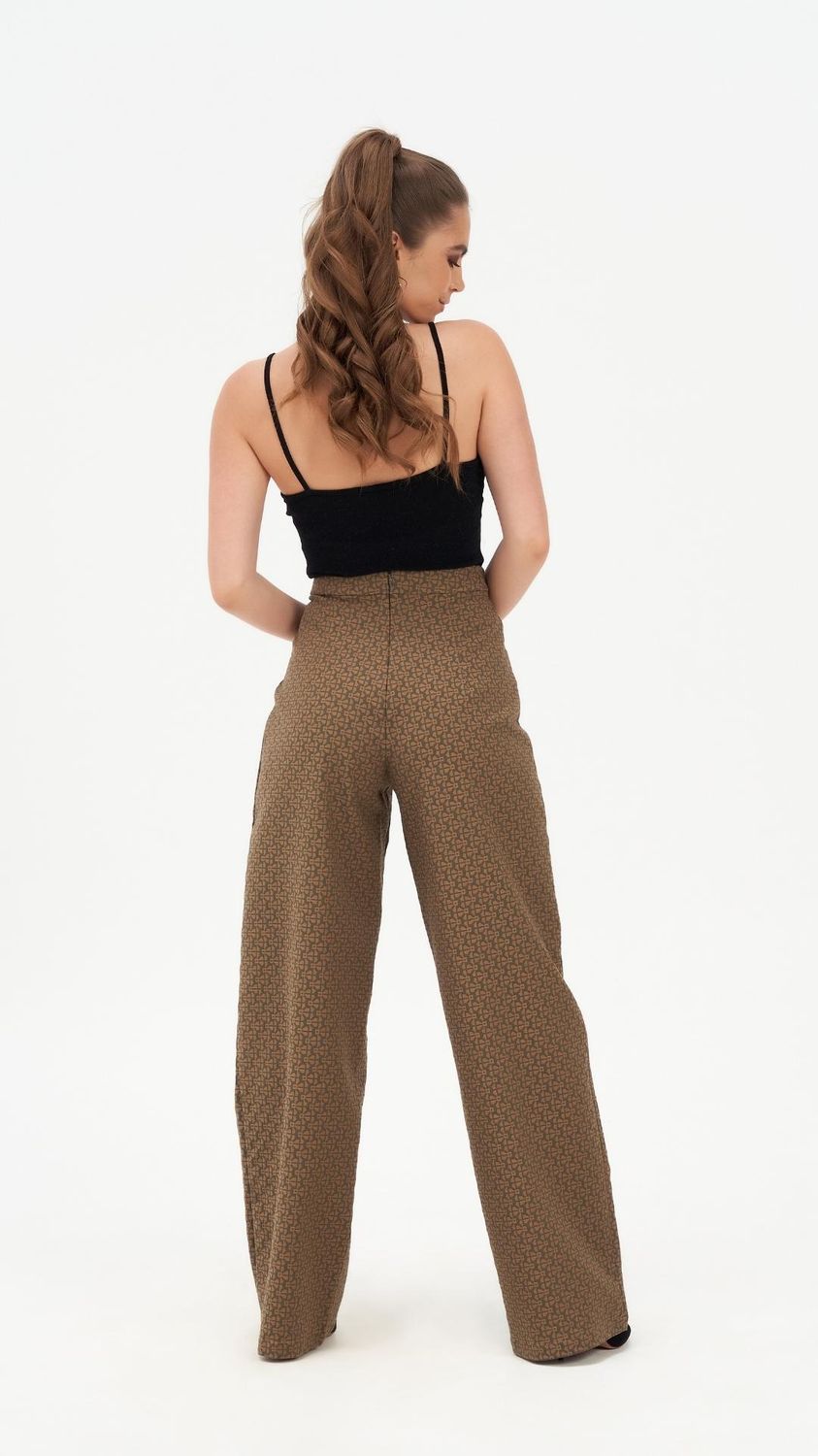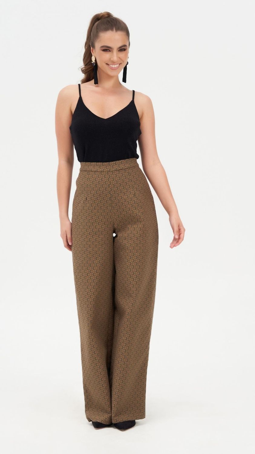 Introducing our Ivy Impressing High Waisted Wide Leg Trousers, meticulously crafted from luxurious mosaic jacquard fabric, making them a timeless staple in any wardrobe. These trousers feature an invisible back zipper and boast a flattering fit and flare silhouette for a modern yet classic look.