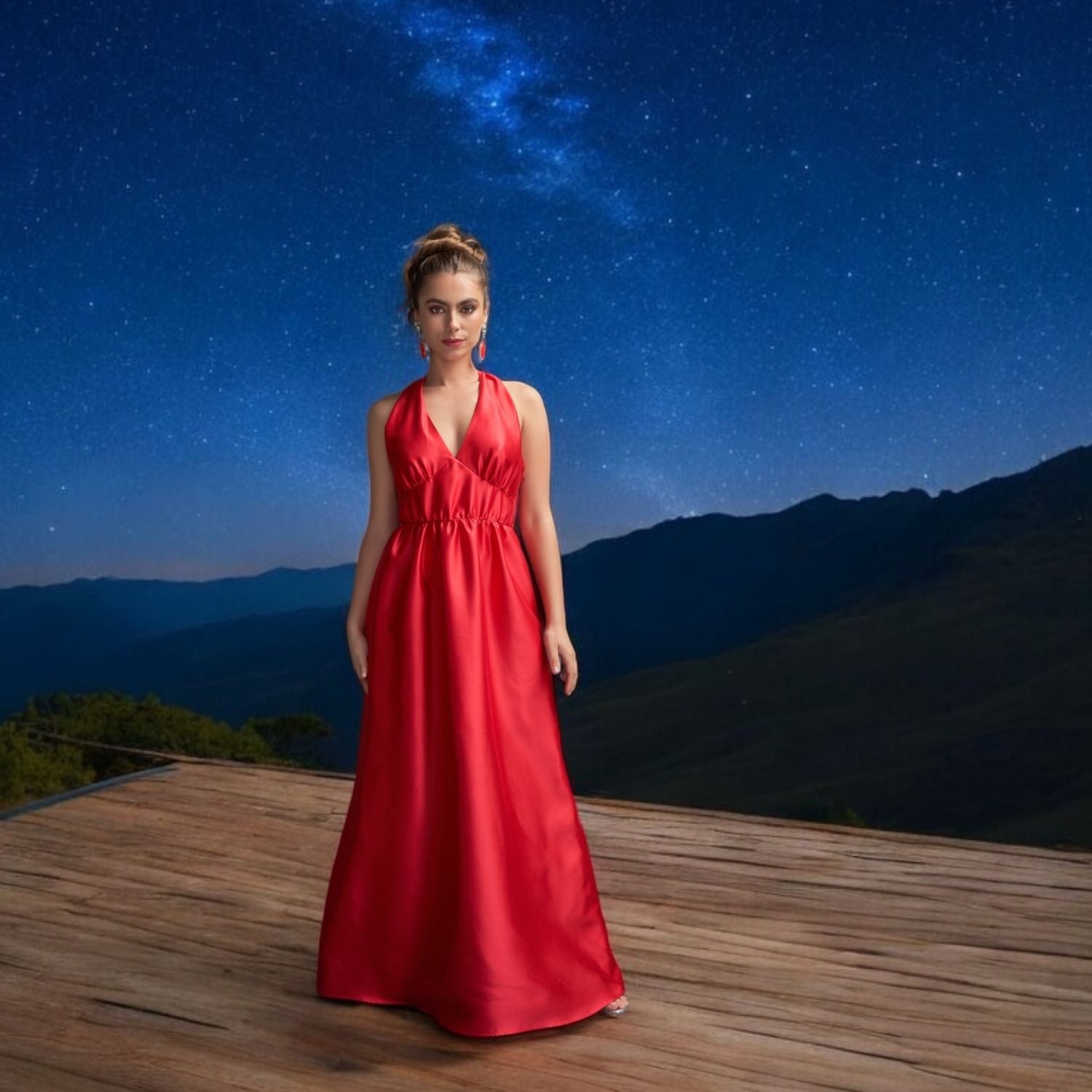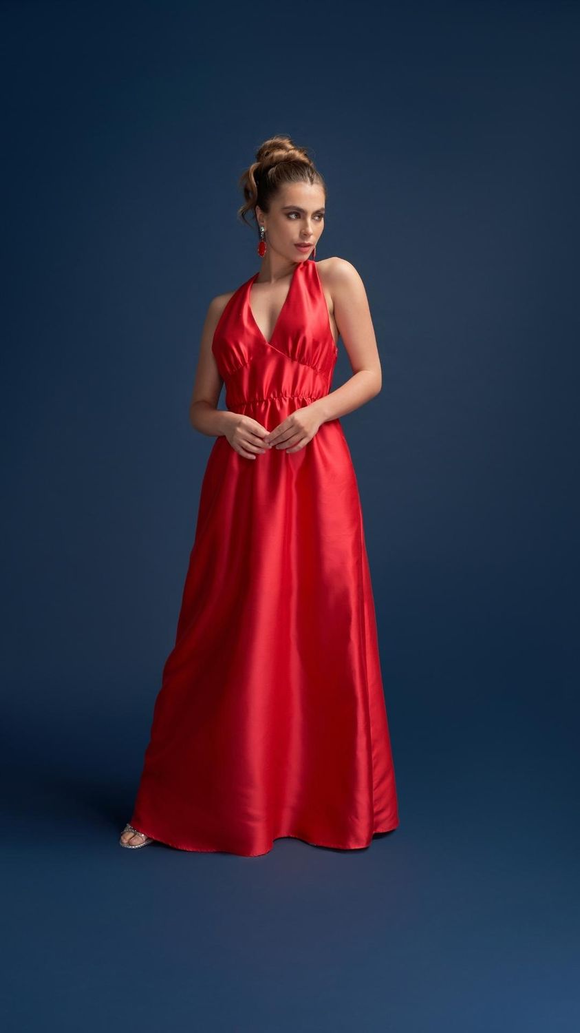 Odette Halter Full length Silk Gown in Red