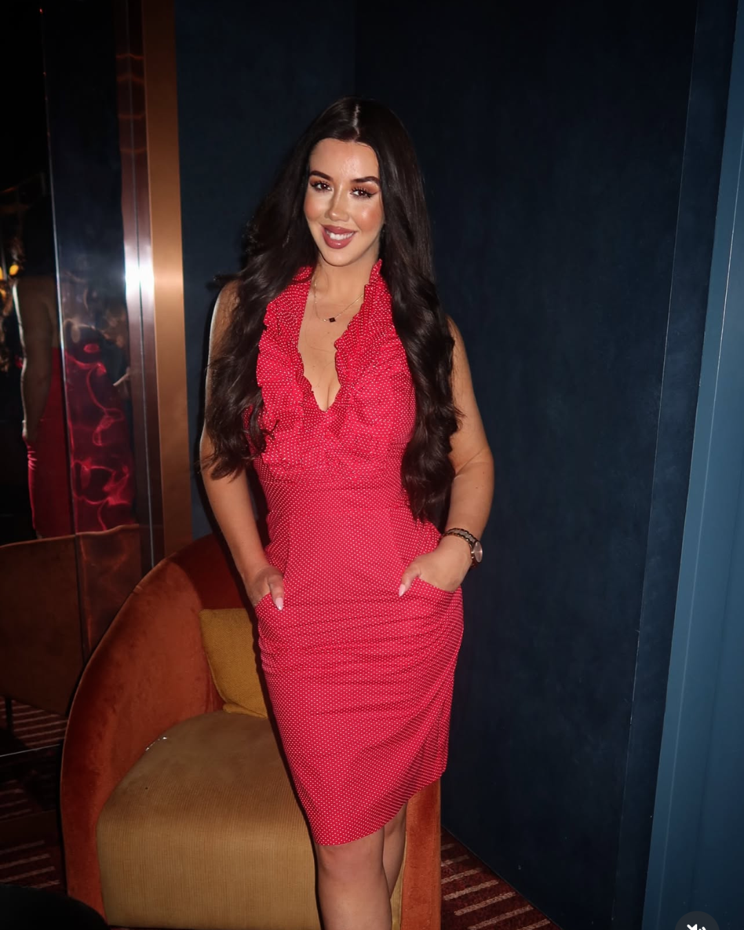 Introducing Betsy Beauty: the epitome of chic sophistication with a fiery twist! This stylish halter dress features a deep plunge ruffled neckline that's sure to turn heads and make a statement wherever you go.