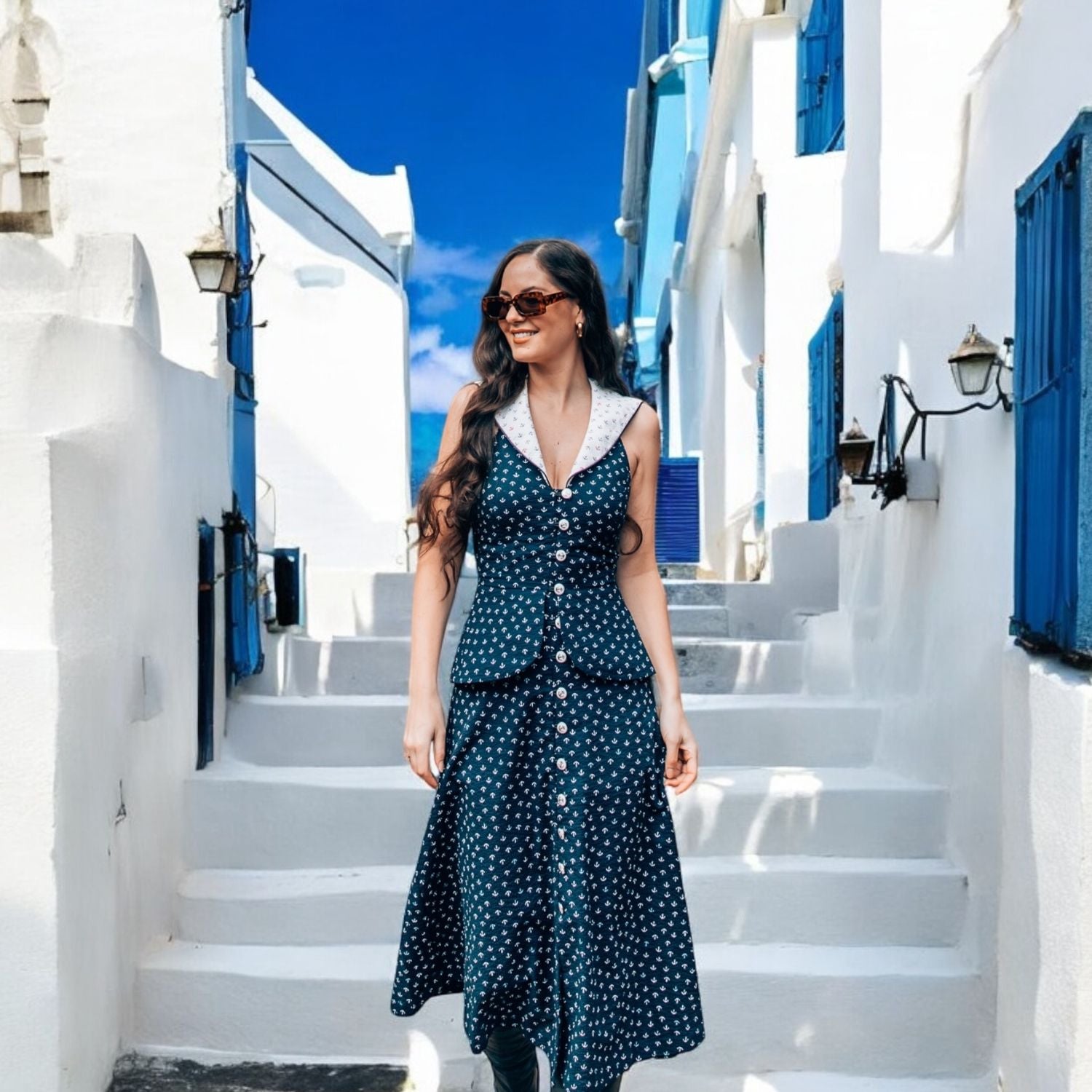 Elevate your summer wardrobe with the Loretta Laughing Anchor Print Midi Dress and sail through the season in style and elegance. Whether you're strolling along the beach or attending a seaside soirée, this dress is sure to turn heads wherever you go.