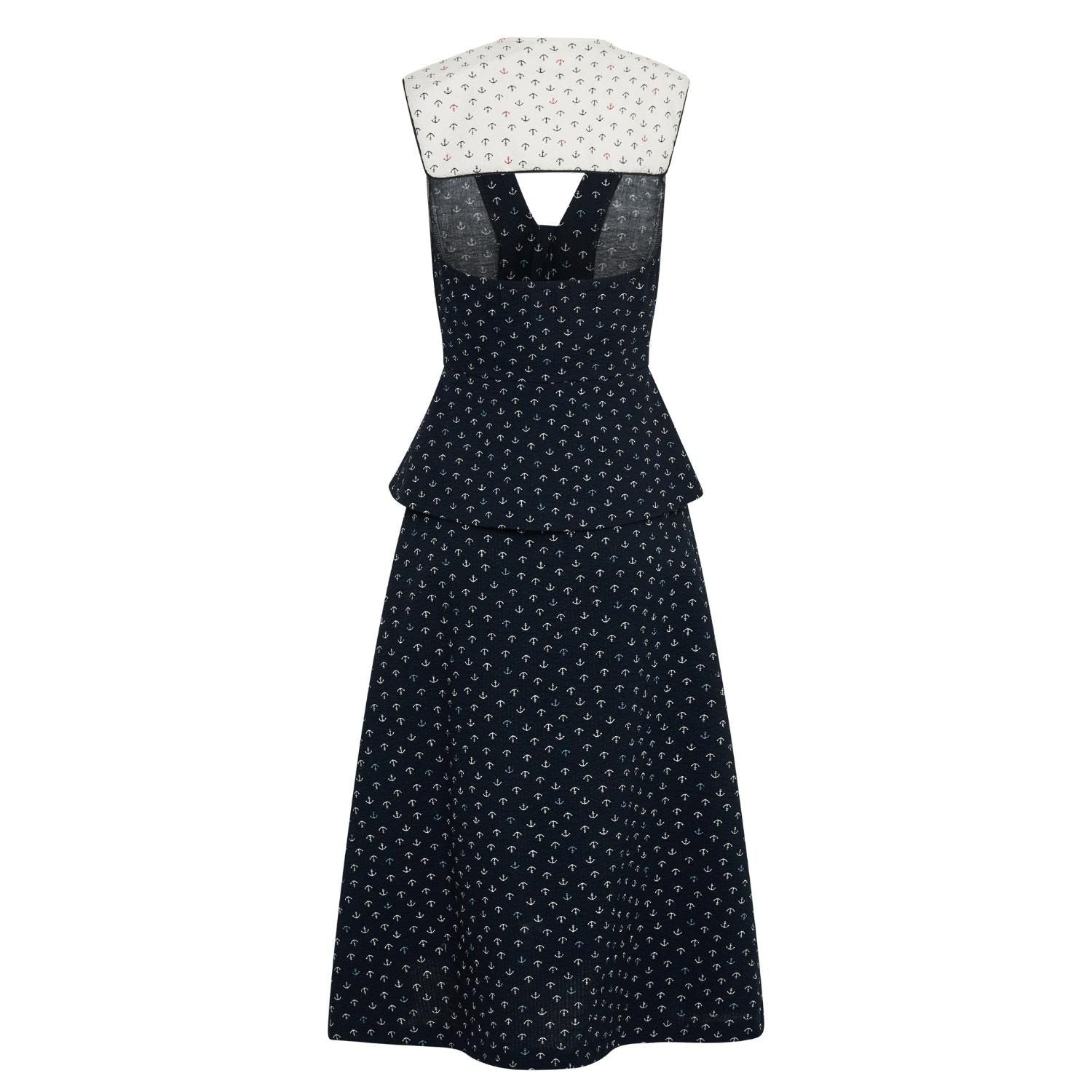 Loretta Laughing Anchor Print Midi Dress with Peplum Frill