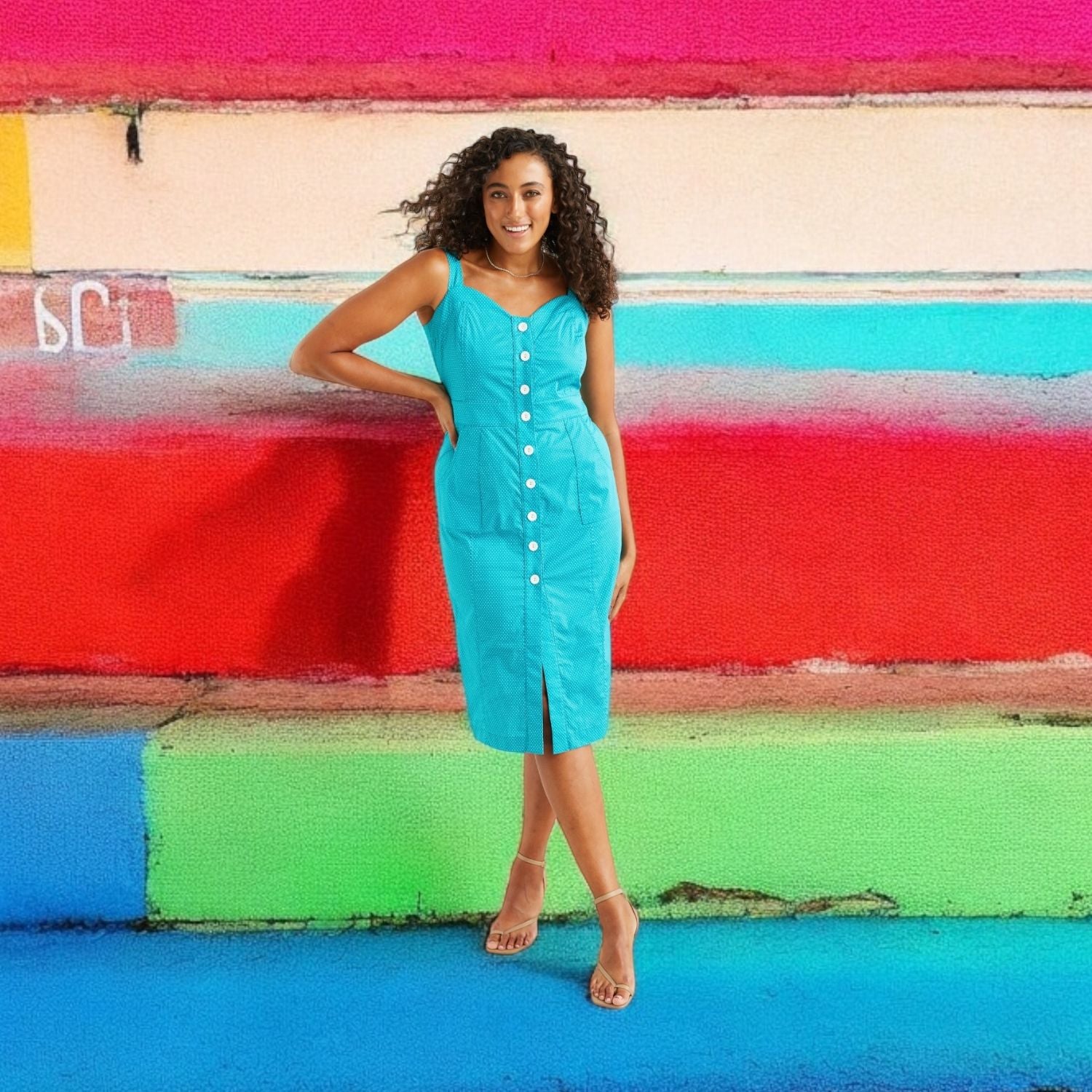 Introducing Queenie Quintessential: the ultimate dress to embrace your curves and slay all day! Designed and crafted with love in Australia, this dress is all about accentuating your figure in the most flattering way. Prepare to turn heads with its statement front button closure, adding a touch of flair to your ensemble. The sweetheart neckline and under-bust line are tailored to perfection, complementing your womanly curves in all the right places.