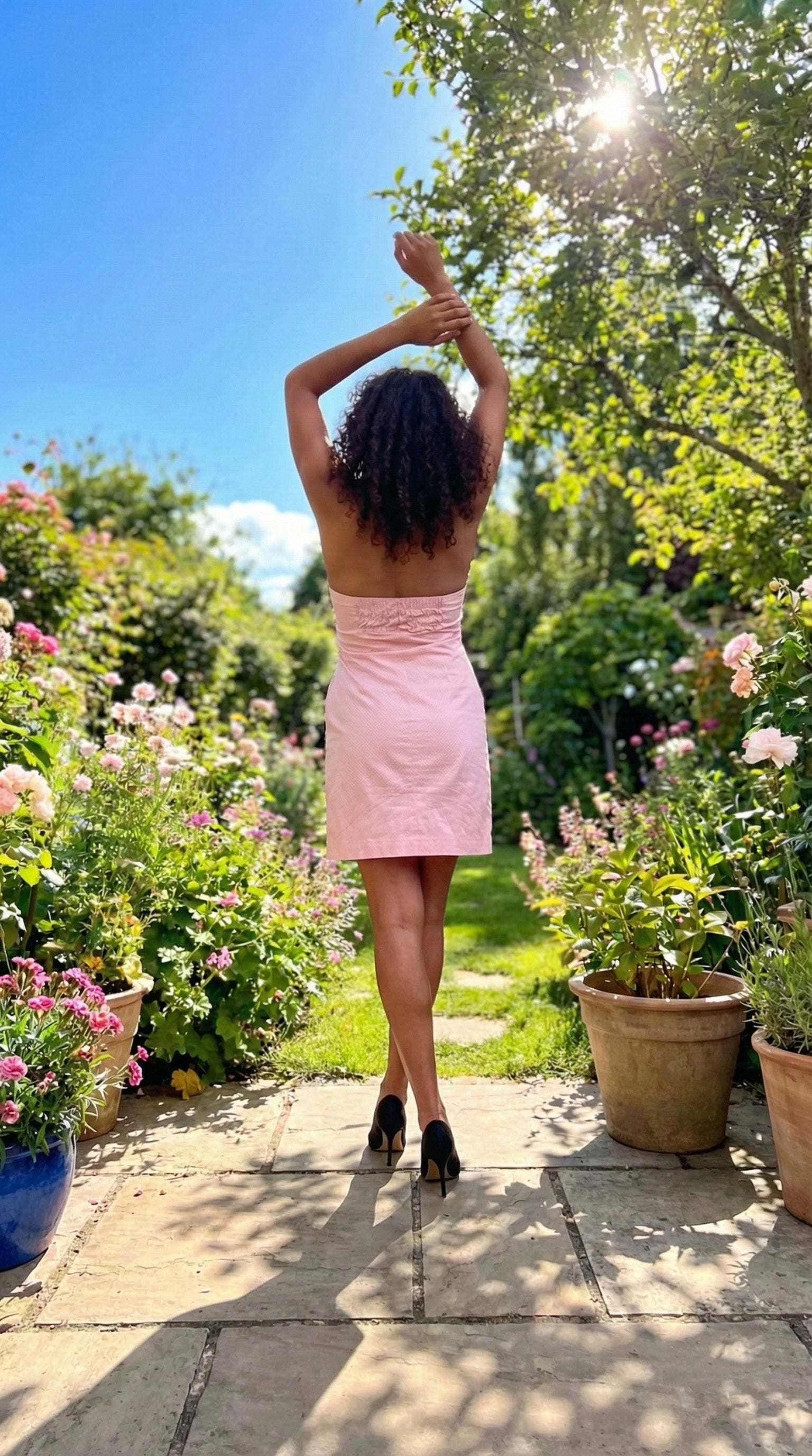 The elastic ruched back panel ensures a perfect fit on the bust, offering both style and comfort. With an invisible side zipper for easy entry and deep front pockets that combine function with statement, this dress is as practical as it is beautiful.