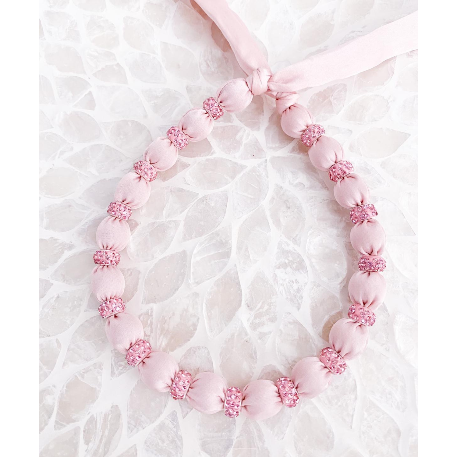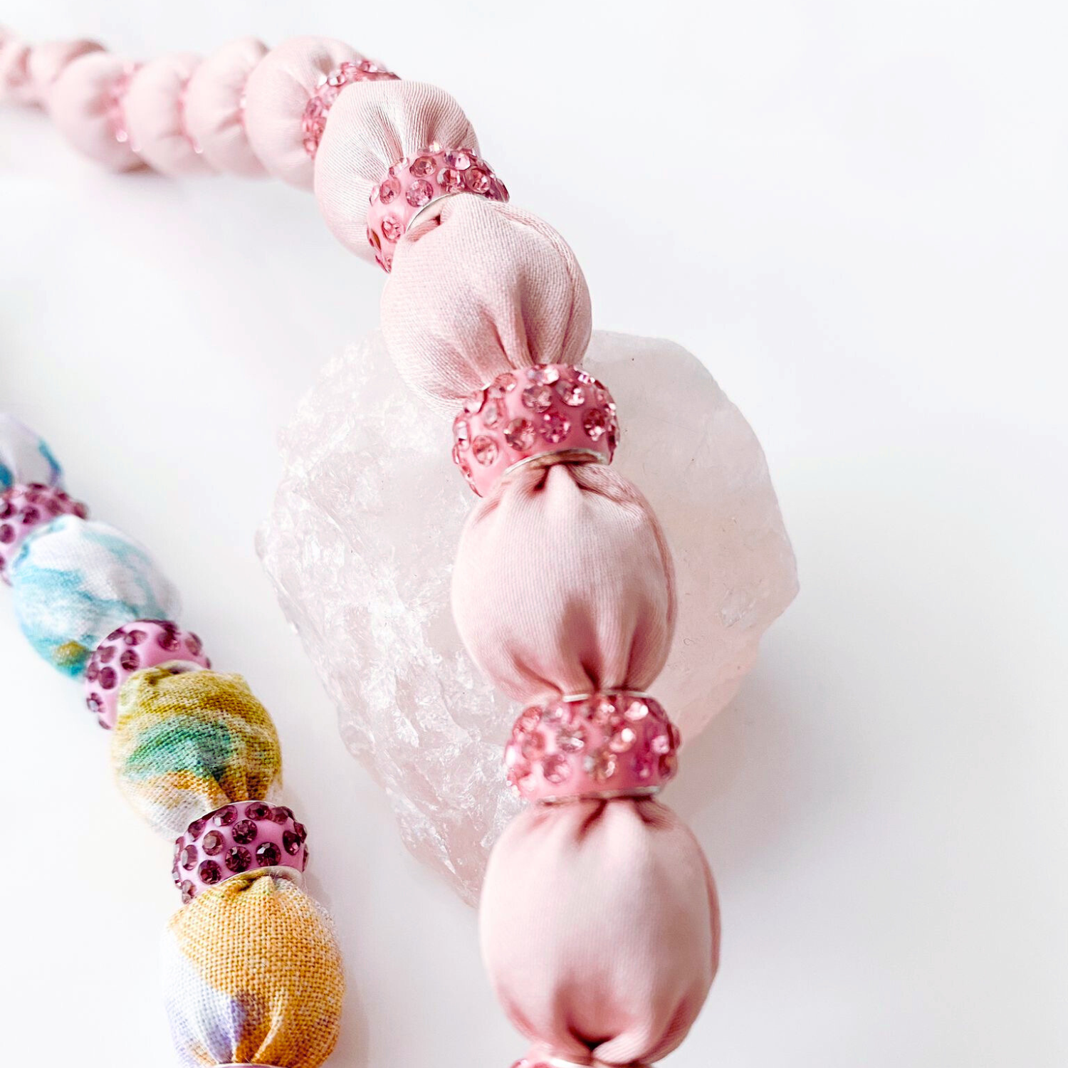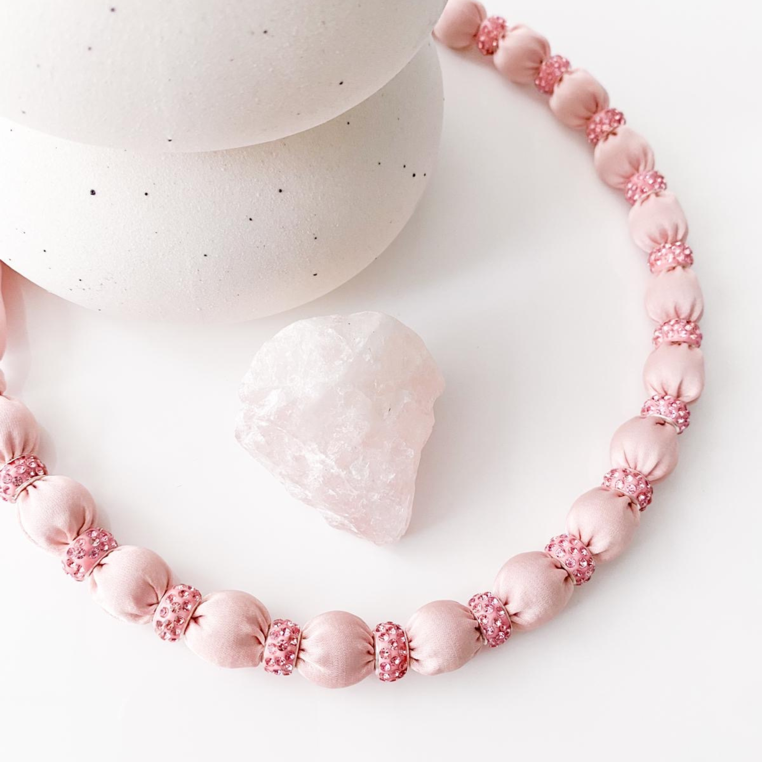 Crystal Embellished Beaded Necklace on Luxe Pink Satin