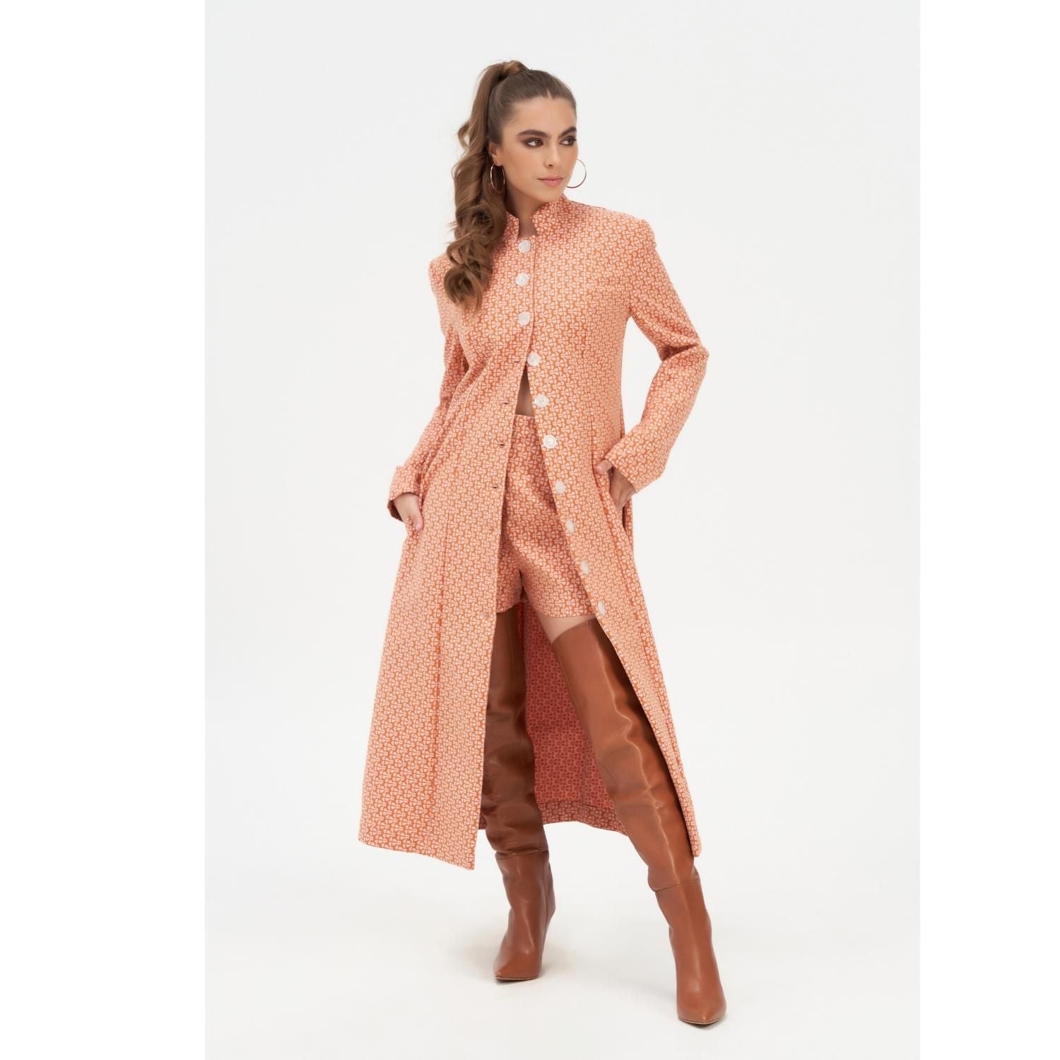 This piece has been responsibly made with sustainability in mind, using up-cycled dead-stock fabric to minimise environmental impact. Pair them with our matching longline tailored jacket or long tailored pant for a bold and modern ensemble.