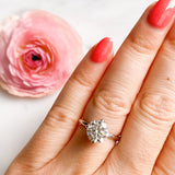 The Petal ring features a beautiful 4 petal basket to showcase the beauty of the centre 2.34ct Round Brilliant Cultured Diamond stone and a delicate gold band. This is a romantic take on a classic design.